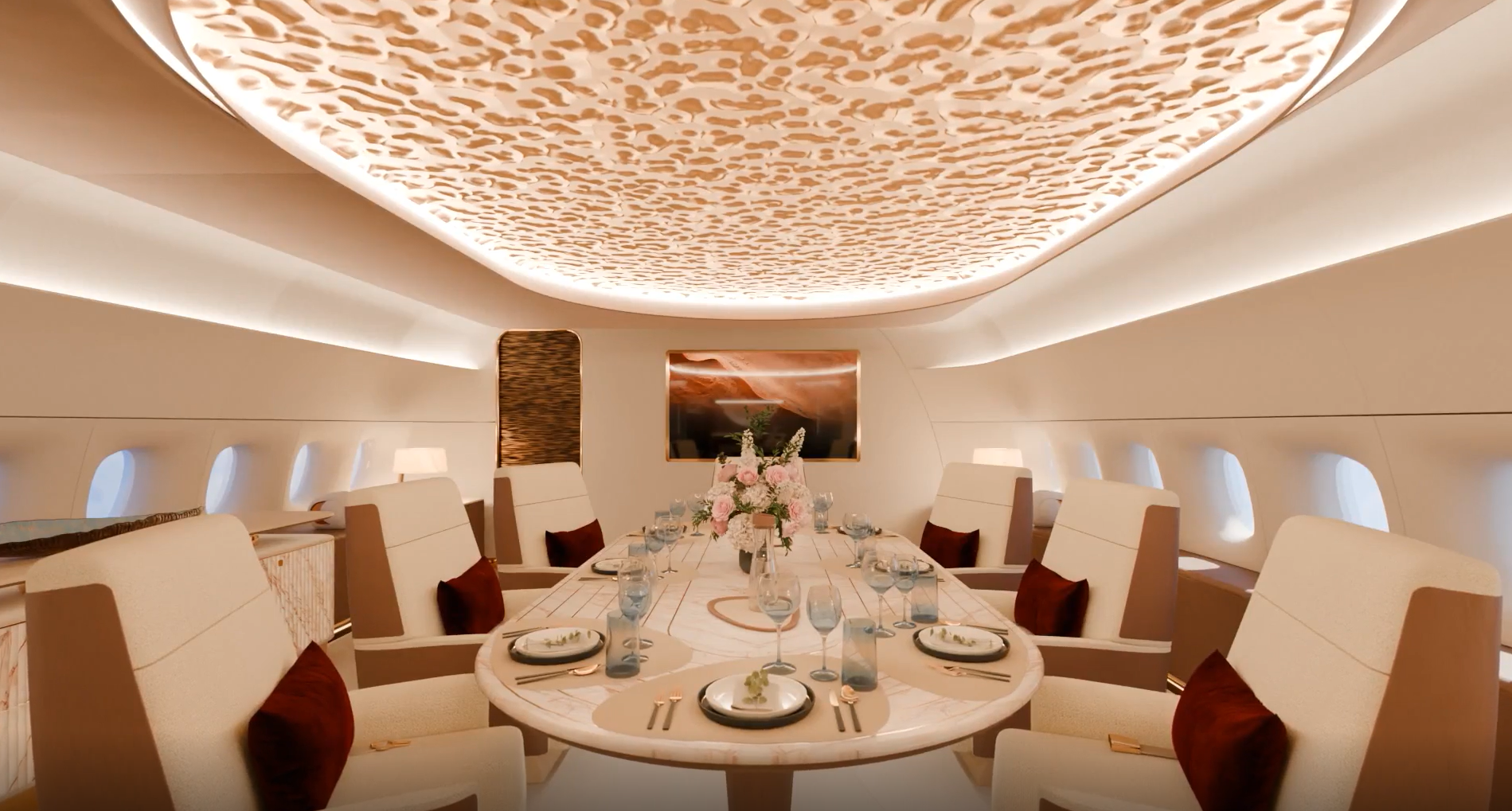 Making full use of the space available in the A350 cabin, the design provides areas for relaxation and productivity, prioritizing flexibility, comfort, and operational efficiency. From every angle, you can see the intricate balance of form and function, the hallmark of a Design Studio embedded within a Completions center.
